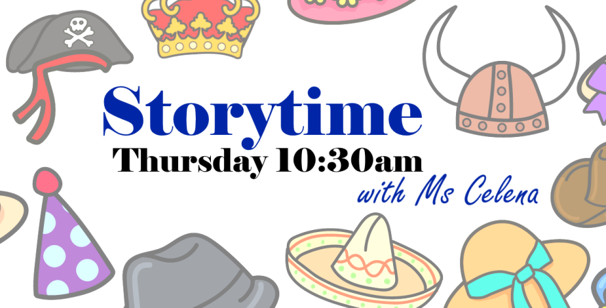 Children and their grownups are encouraged to wear their hats to storytime. It can be a simple hat you wear every day or something wild and crazy. It's up to you!