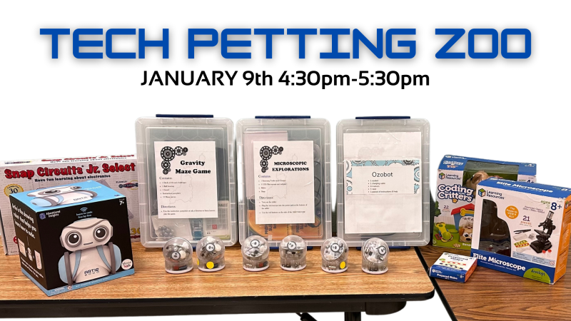 We'll have an assortment of STEM based gizmos and gadgets for kids age 6-11 to explore with their grownups!